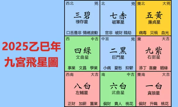 2025年九宮飛星圖及風水方位吉兇與化解